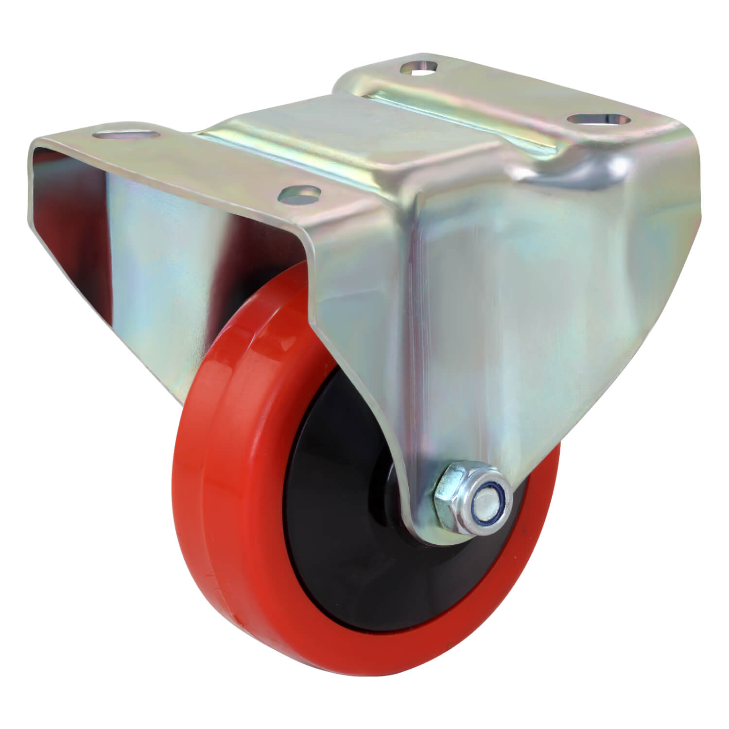 This is a fixed-type zinc plated caster with a single ball bearing nylon wheel that has a diameter of 80mm. The caster also has a polypropylene dust-proof cover for added durability.